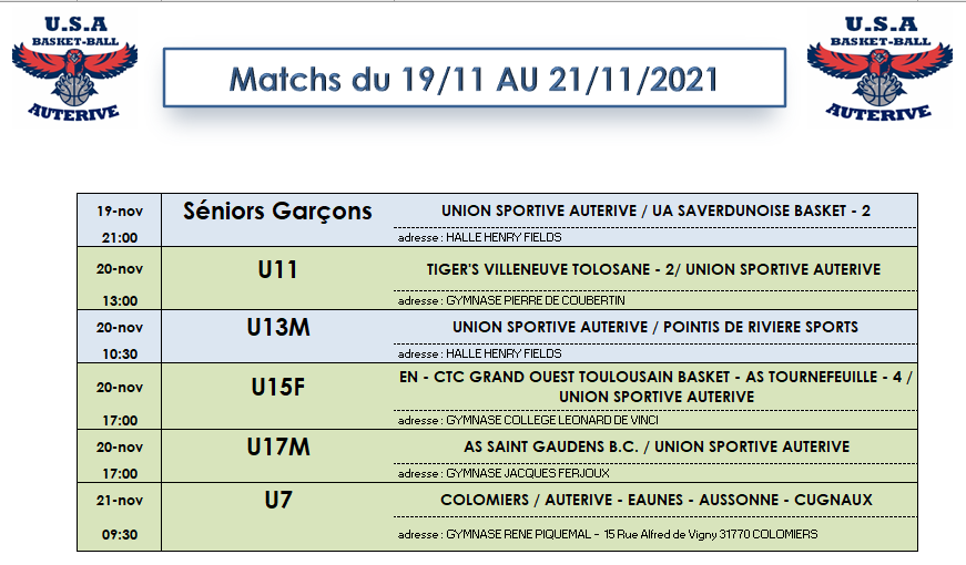 Matchs du Weekend du 19 au 21 Novembre 2021
