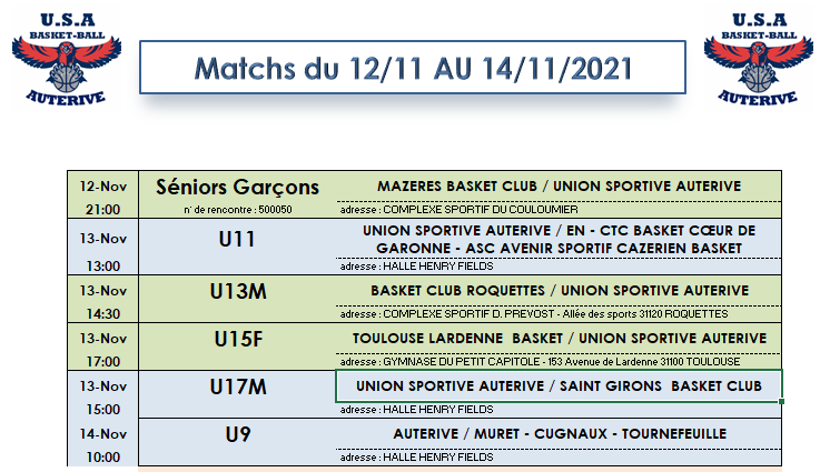 Mise à jour 10/11/2021 pour horaire Benjamins