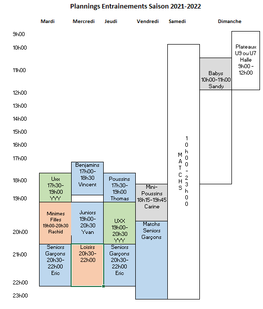 Le planning mis à jour pour la saison 2021-2022 est en ligne
