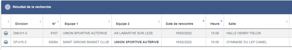 Planning Matchs weekend du 10 au 12 décembre 2021
